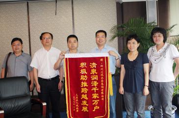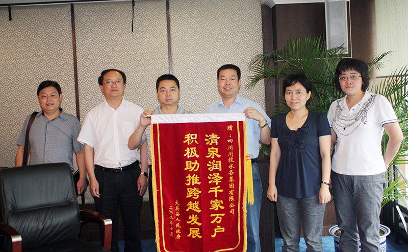 大英县人民政府原县长雷云向川投水务赠送锦旗