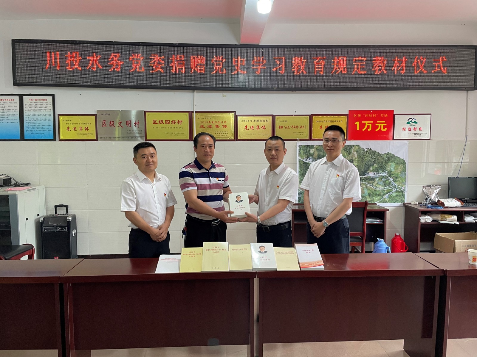 为不断丰富党员群众精神文明生活,扎实深入开展党史学习教育,积极助力乡村振兴。6月3日,川投水务集团党群工作部副部长李至彬一行来到定点帮扶点乐山市金口河区永胜乡民主村开展捐赠党史学习教育书籍活动。捐赠仪式上李至彬副部长代表川投水务党委向民主村捐赠了党史学习教育书籍,此次捐赠的书籍共8套,41册,既有《习近平论中国共产党历史》《毛泽东、邓小平、江泽民、胡锦涛关于中国共产党历史论述摘编》《习近平新时代中国特色社会主义思想学习问答》《中国共产党简史》等4本党史学习教育规定教材,还有《习近平谈治国理政》第三卷、《习近平新时代中国特色社会主义思想学习纲要》等政治理论学习教材。