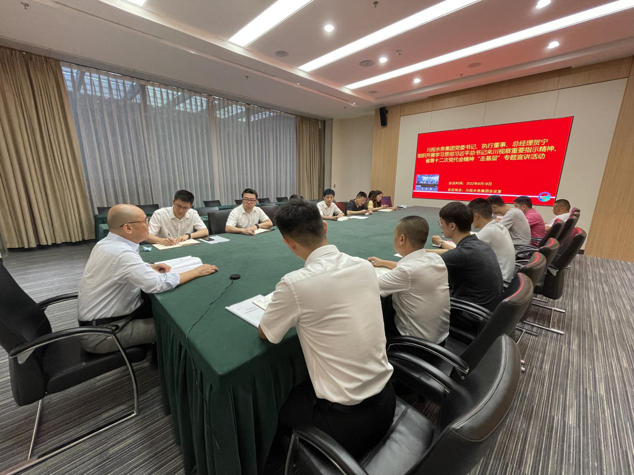 8月18日,根据川投水务集团党委《关于认真做好学习贯彻习近平总书记来川视察重要指示精神和省第十二次党代会精神“走基层”专题宣讲的通知》统一安排部署。川投水务集团党委书记、执行董事、总经理贺宁,组织召开了学习贯彻习近平总书记来川视察重要指示精神和省第十二次党代会精神“走基层”专题宣讲会,射洪水司领导班子、全体党员干部,严格按照疫情防控要求,以视频会议宣讲形式参会。川投水务集团本部全体党员干部、职工,参加现场学习。