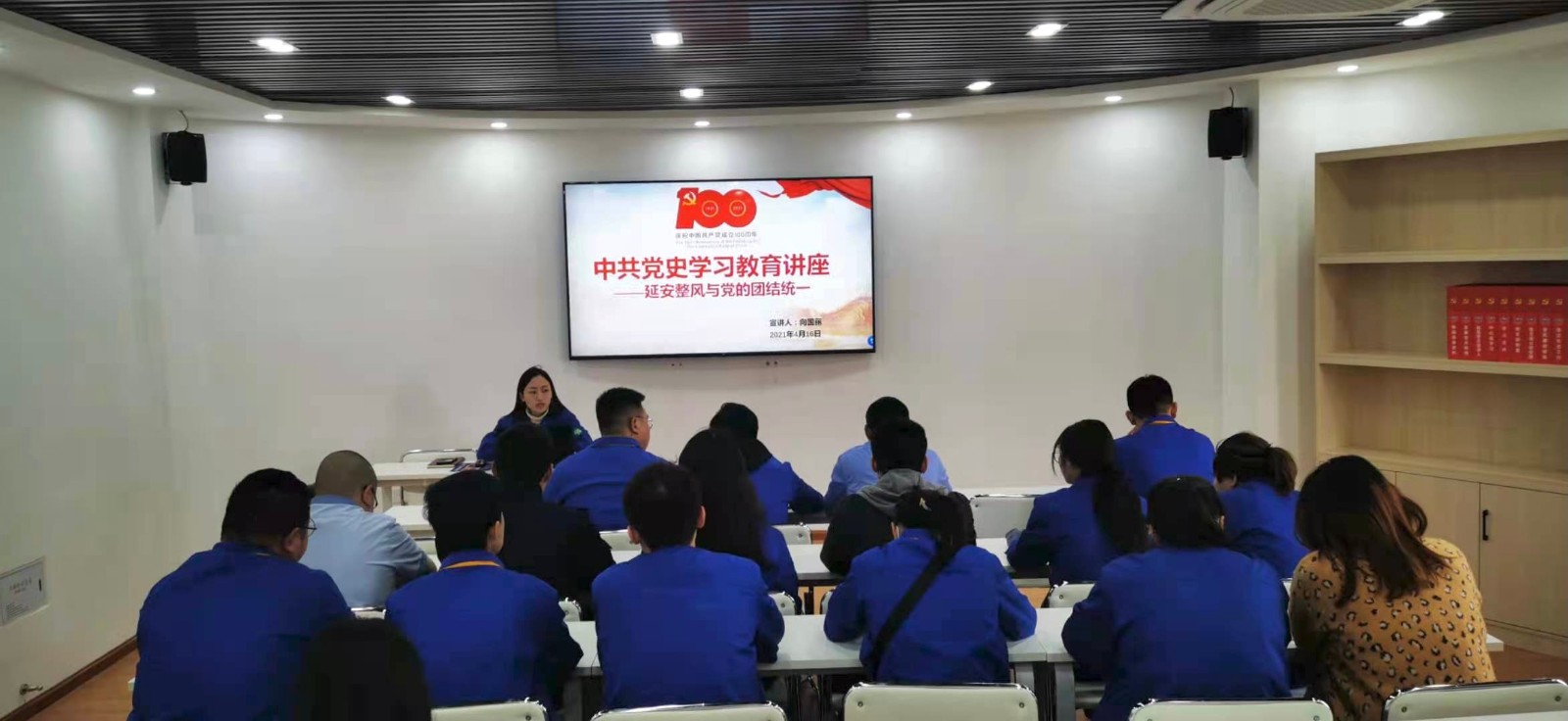为了深入学习贯彻习近平总书记在党史教育学习动员大会上的重要讲话精神,落实习近平总书记关于党史、新中国史、改革开放史、社会主义发展史,喜迎建党百年专题教育,重温延安整风历史,弘杨延安整风精神,4月16日,川投水务射洪水司团支部开展《延安整风与党的团结统一》专题讲座。本次讲座由团支部书记向国丽担任主讲人。公司全体团员到场参与讲座。