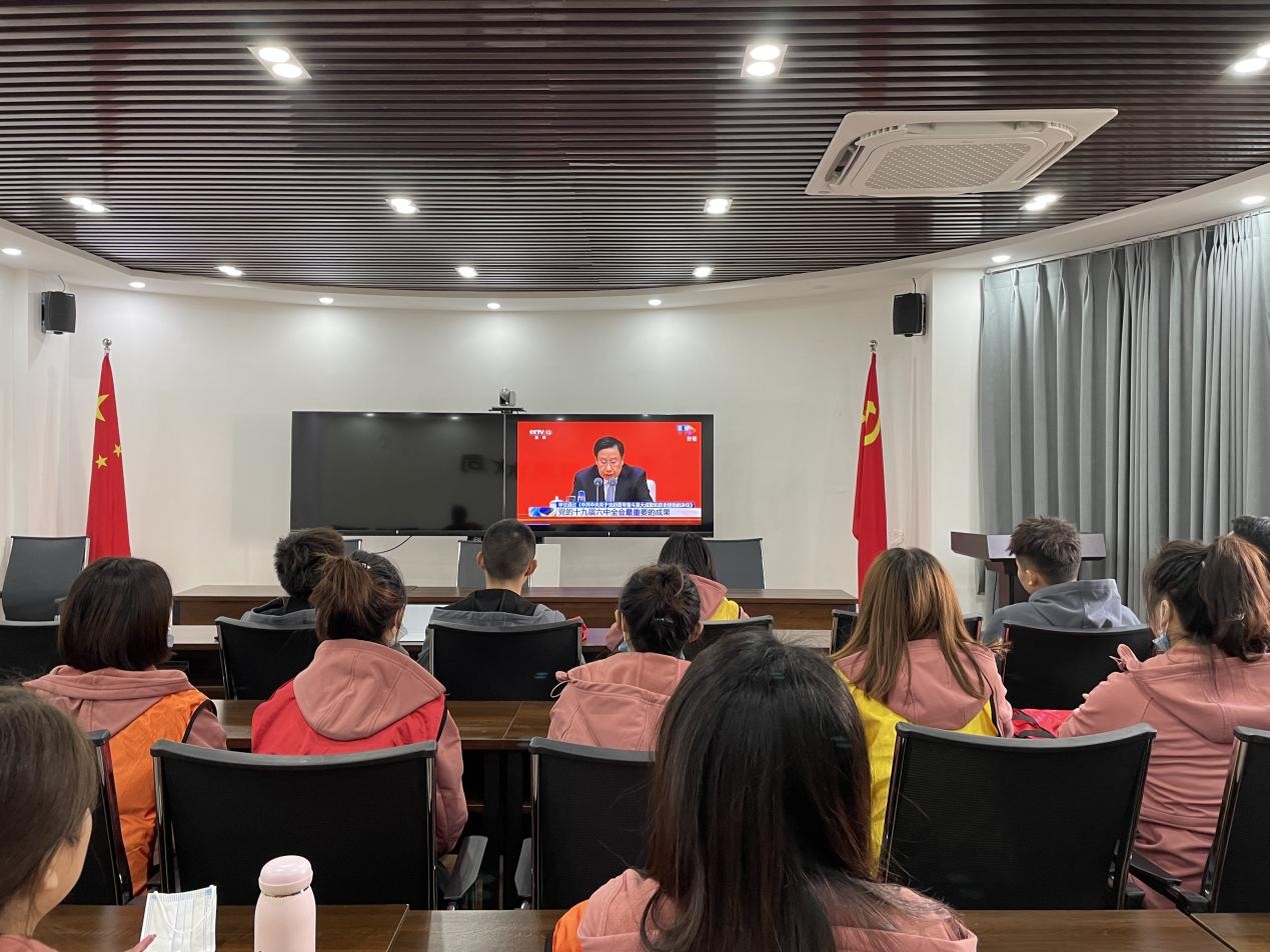 11月12日上午10时,公司党支部组织全体党员及青年员工在二楼会议室集中观看中共中央举行的介绍党的十九届六中全会精神新闻发布会。
