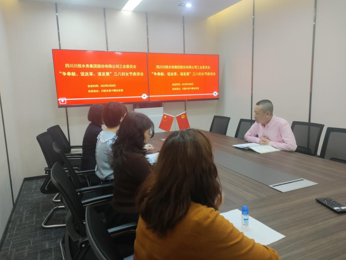 喜逢2022年“三八国际妇女节”来临,川投水务集团工会在3月8日以“争奉献、促改革、谋发展”为主题,开展了主题鲜明、内容丰富、形式多样“三八节”活动。川投水务本部全体女职工欢聚一堂,共度属于自己的美好节日。会议由川投水务集团党群纪检工作部主任李至彬主持。