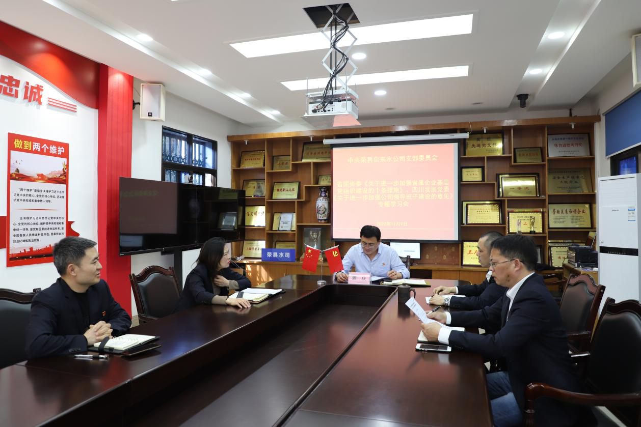 11月9日上午,荣县水司支部召开省国资委《关于进一步加强省属企业基层党组织建设的十条措施》、四川发展党委《关于进一步加强公司领导班子建设的意见》专题学习会。公司支部书记、执行董事、总经理龚庆主持会议,4名支部委员参加会议。