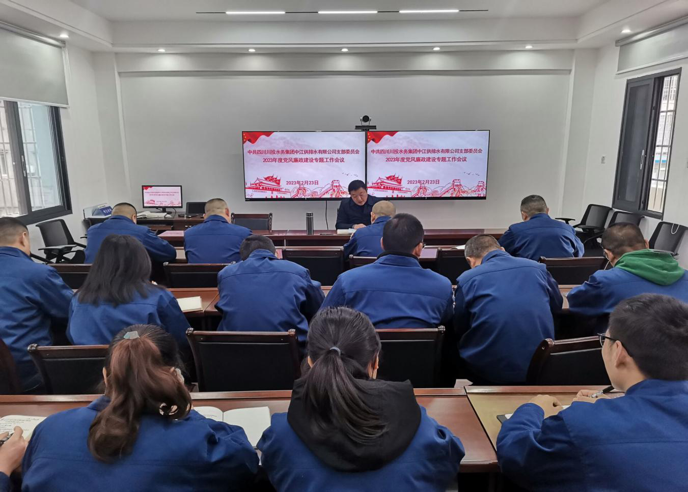 为深入学习贯彻二十届中央纪委二次全会、省纪委十二届二次全会精神,认真落实2023年度四川发展、四川省生态环保集团、川投水务集团有关党风廉政建设工作要求,确保公司2023年度党风廉政建设工作开好头、起好步。2月23日,中江水司支部党员、入党积极分子、中层管理人员、关键岗位人员近20余人,召开了2023年度党风廉政建设专题会议。