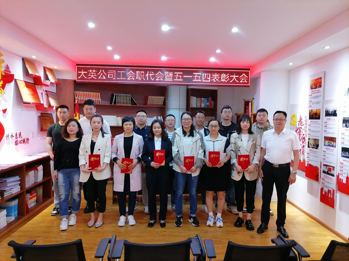 4月30日上午,为传承五四精神,宣扬劳模事迹,表彰先进鞭策后进,促进公司各项工作再创新高。大英水司工会在五楼党员活动室召开2024年职工代表大会暨五一·五四表彰大会。大英公司副总经理、工会主席王洪先主持。工会全体委员、职工代表、青年代表、受表彰先进个人30余人参加会议。
