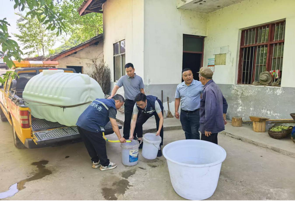 针对斑竹溪村地形较高、道路崎岖的实际情况,万源公司调配两辆皮卡车载水,通过送水车直接为村民供水和注入蓄水池。党员先锋队员们顶着烈日,肩扛手提,将清水送至村民院落,重点保障孤寡老人、留守儿童等弱势群体用水需求,用真情服务架起党群“连心桥”。通过实地送水、节水宣传等举措,助力村民渡过旱情难关。