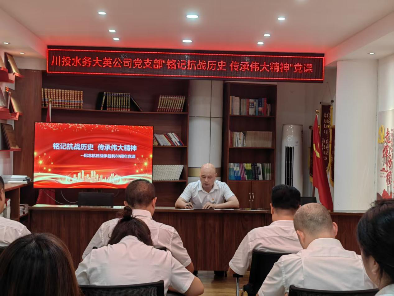 在纪念中国人民抗日战争暨世界反法西斯战争胜利80周年之际,9月25日,川投水务大英公司党支部书记王文川以“铭记抗战历史 传承伟大精神”为主题,为全体党员讲授专题党课,推动红色基因融入岗位实践。