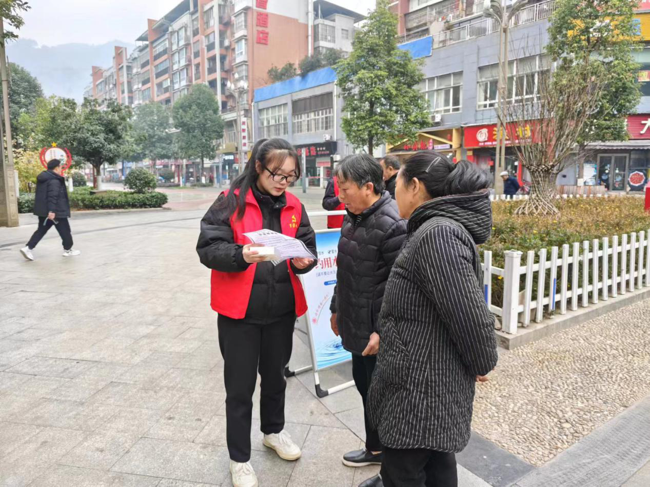 青年突击队积极响应,“志愿红”温暖了寒冬,在寒冷天气中点燃青春热情,展现新时代青年担当与力量。他们在人员集中处、广场等发放冬季安全用水宣传单,现场讲解安全用水常识以及冬季用水设施防冻保护知识,并通过知识问答和发放小礼物的方式,与群众进行互动,积极推广公司微信公众号平台,得到了群众的充分肯定。