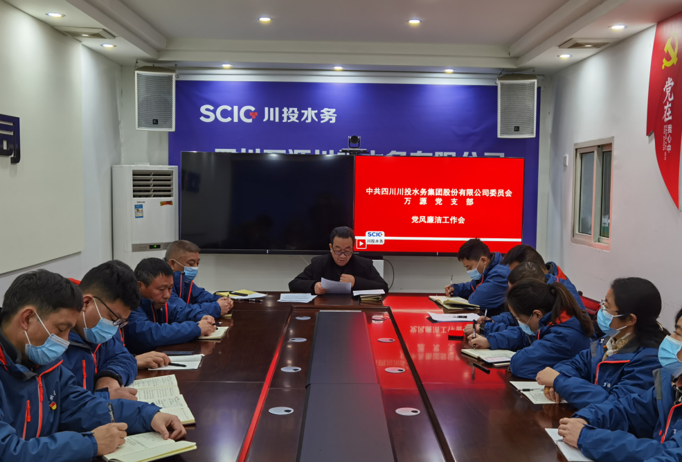 2022年1月21日下午,万源水司组织召开党风廉洁专题会议,传达学习了习近平在十九届中央纪委六次全会上的重要讲话精神和中国共产党第十九届中央纪律检查委员会第六次全体会议公报,并开展了节前集体廉洁谈话,强调了春节期间廉洁自律工作。