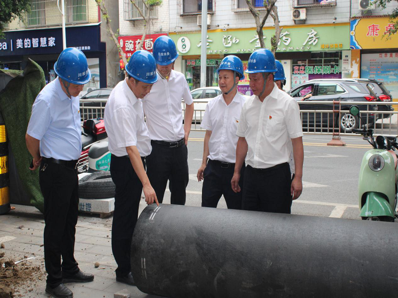 检查组一行首先来到龙滩村取水口实地检查防汛工作,听取了杜刚同志就汛期防洪、供水保障、民生服务、应急演练工作落实情况的汇报。随后来到公司生产厂区和环检公司,查看了盐酸储存情况、加药间应急物资、危险化学品管理情况,提出加药间应急物资装备应按照就近放置原则设置存放点。最后,来到公司紫薇路供水干管东延工程安装及土建施工现场,刘总建议现场施工单位安全员应到岗、施工过程焊接漏液应做收集处理、超1.5米基坑应放坡处理、超1米基坑应做临时支护。