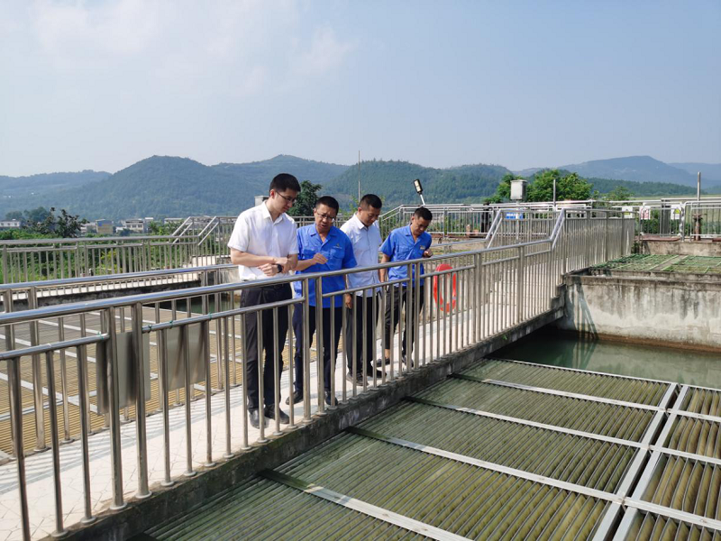 9月5日上午,四川川投水务集团党委委员、副总经理严斯亮一行到中江水司开展防汛防灾、安全环保检查工作,中江水司党支部书记、董事长、总经理朱禹,常务副总经理秦荣及相关部门负责人等陪同检查。