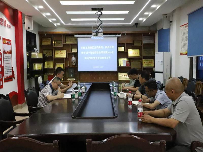 为贯彻全省安全生产调度会精神,落实四川发展安全规范工作部署,5月15日上午,川投水务集团党委委员、副总经理徐子锐一行赴荣县公司开展劳动节后复工安全专项检查工作。荣县公司党支部书记、董事长、总经理龚庆,副总经理赵勇及相关部门负责人陪同检查。