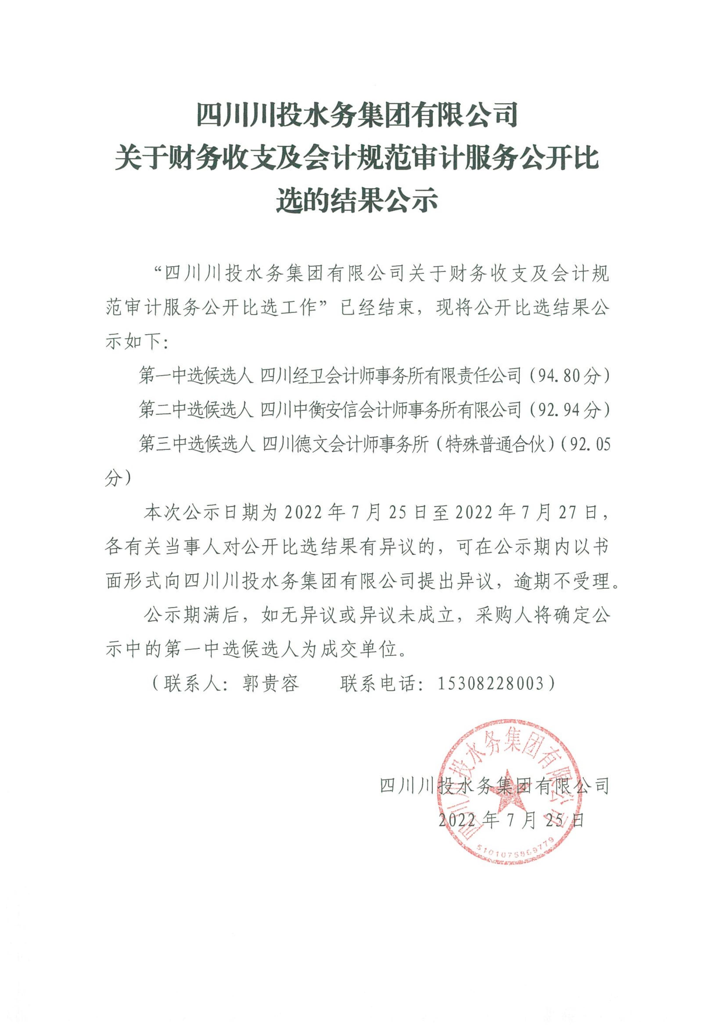 上一条:四川川投水务集团有限公司关于选聘财务收支及会计规范审计服务中介机构的公告(第二次)