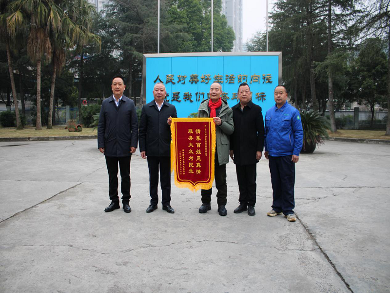 2024年1月29日,锦湖商厦业主委员会送来的“情系百姓见真情,服务大众为民生”锦旗,对射洪水司为民办实事、解民忧表达感激之情。