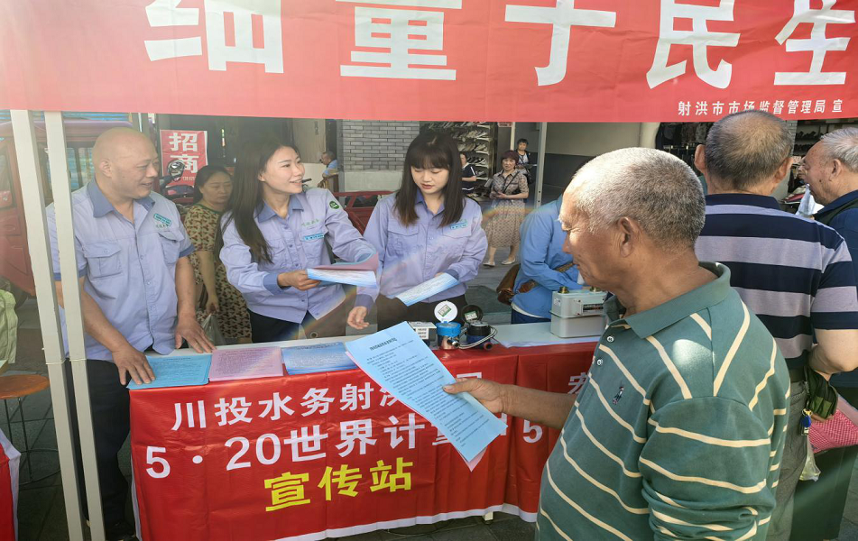 2024年5月20日是第二十五个世界计量日,为加强计量科普宣传,增强全社会计量意识,营造世界计量日良好的宣传氛围,川投水务射洪水司开展“5·20世界计量日”宣传活动。