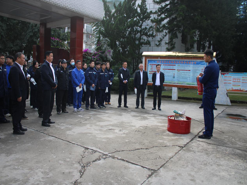 随后,现场模拟火情,组织模拟消防逃生演练,现场演示讲解干粉、二氧化碳和水基灭火器的使用方法和注意事项。