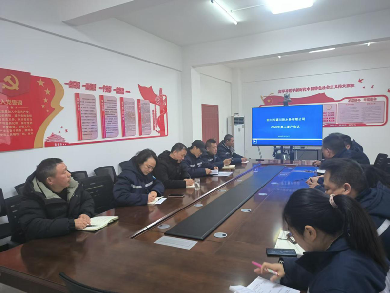 2025年2月5日,为全面贯彻落实川投水务集团的复工复产要求,确保新一年供水工作的顺利开展,川投水务万源公司在驮山水厂会议室组织召开了2025年复工复产会。公司领导班子及中层干部参加此次会议。