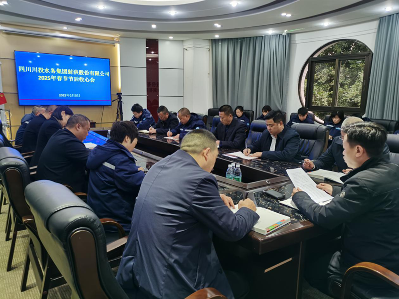 凝心聚力开好头,踔厉奋发谱新篇。2月5日下午,川投水务射洪公司召开了2025年春节节后收心会暨工作推进会。会议由公司党支部书记、董事长李至彬主持,公司领导班子、中层干部及各部门员工代表参加会议。