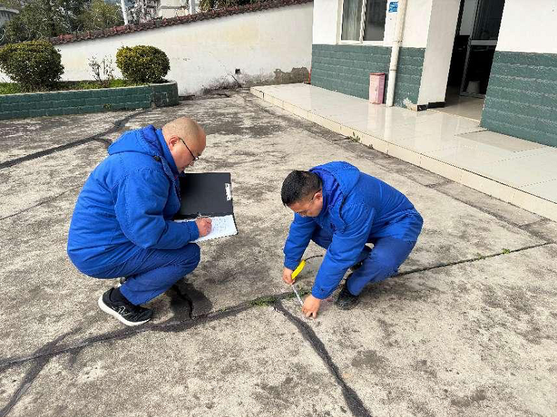 在地质灾害隐患排查中,检查组对潜在隐患点进行了实地全面检查,重点围绕临河面、山体边坡等地质灾害易发区域,检查并关注山石是否有裂缝、土质是否松动、地面有无裂痕、排水沟渠通畅等情况。同时检查组还查阅了地质灾害隐患巡查记录是否完整、监控视频运行状态和应急物资的储存情况。